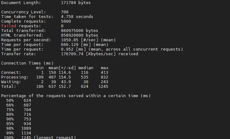 - Using ab (apache benchmark) doing 10.000 requests with 700 concurrent requests never triggered the issue at hand.